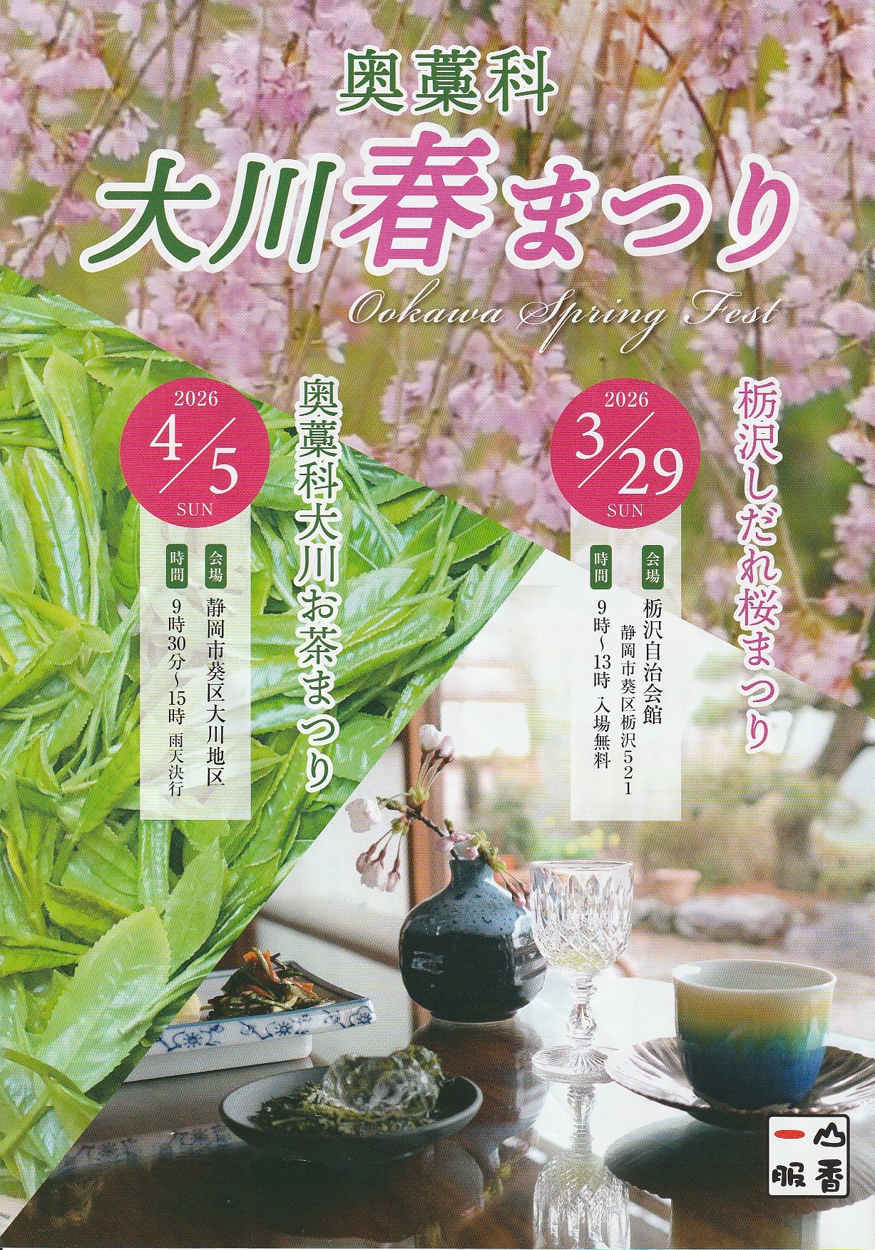 3月29日(日)「栃沢しだれ桜まつり」、4月5日(日)「奥藁科大川お茶まつり」が開催されます。